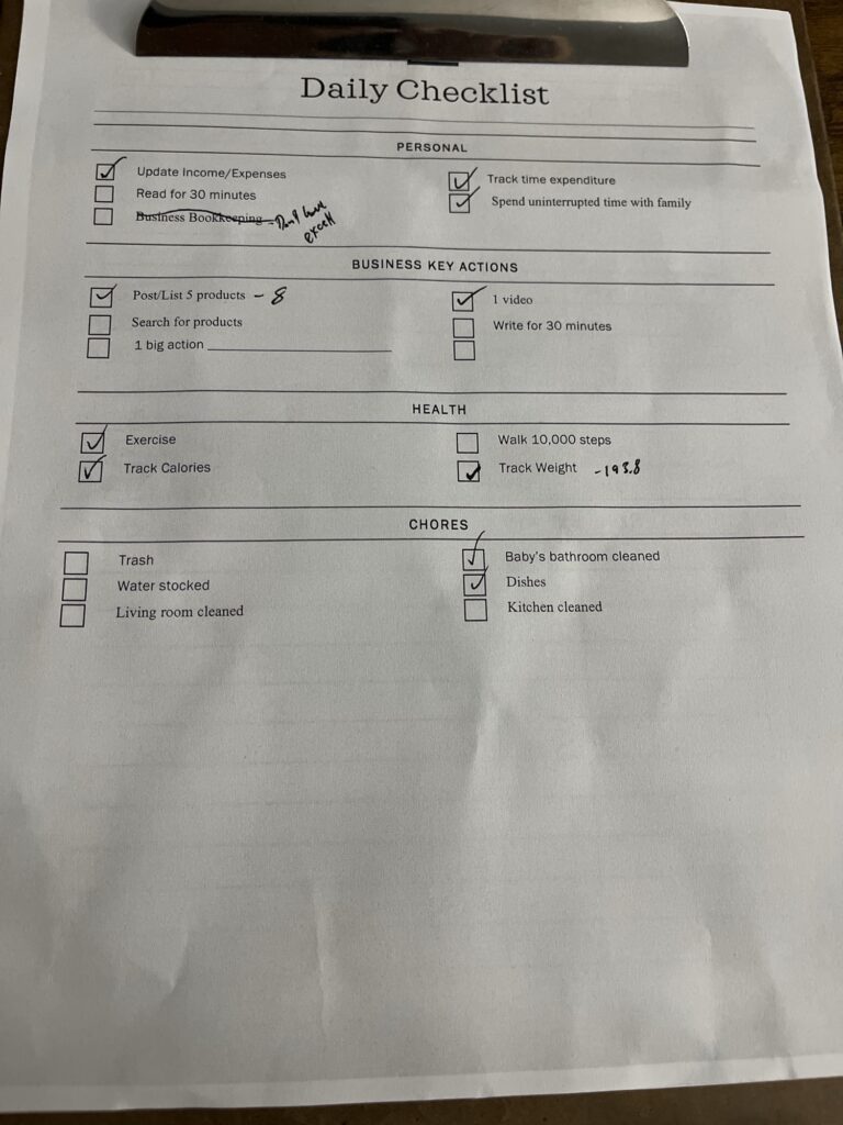 One of the bigger highlights today was creating two new templates. The first is a checklist to track my daily tasks, and the second is a log to record everything I do throughout the day so I can see where my time is really going. I used both today, and it felt good to have a system keeping me focused and accountable.